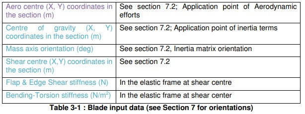 For each section, the following data should be provided. Data for structural and aerodynamic calculations are provided and are summarised in the table below.