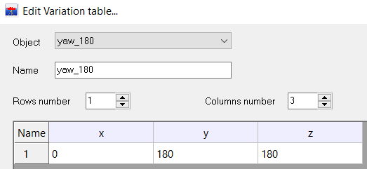Yaw is defined in a displacement. The sub-displacement “Yaw90_0” is input in the setup showed above.