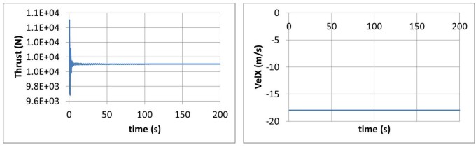 The blades are rotated by a 90° angle during the static calculation in order to reduce the drag forces on them and consequently the thrust force. The hub is not released at the beginning of dynamic calculation. A dummy controller is used which does nothing. A DLC has been used to modify the parameter of the controller for this analysis only.