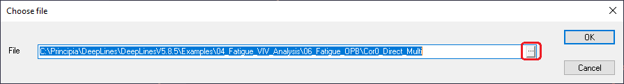 A dialog box will open, prompting you to select a file. Click on the browse button (here framed in red) to select the result file from which you want to display the fatigue. Validate with the OK button.