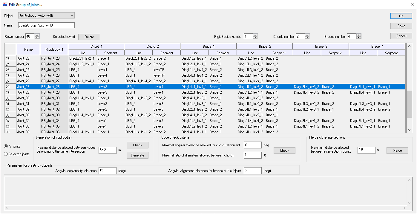 The following screenshot of the Edit Group of joints... dialog box shows for example the definition of the joint named Joint_28: