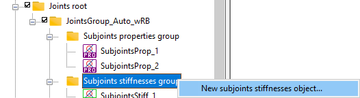 Alternatively, a new Subjoints stiffnesses object can be created by selecting the item of the contextual menu of the Subjoints stiffnesses group: