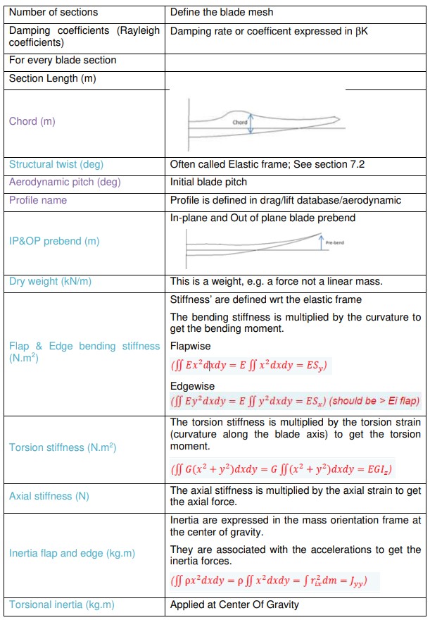 For each section, the following data should be provided. Data for structural and aerodynamic calculations are provided and are summarised in the table below.