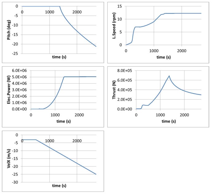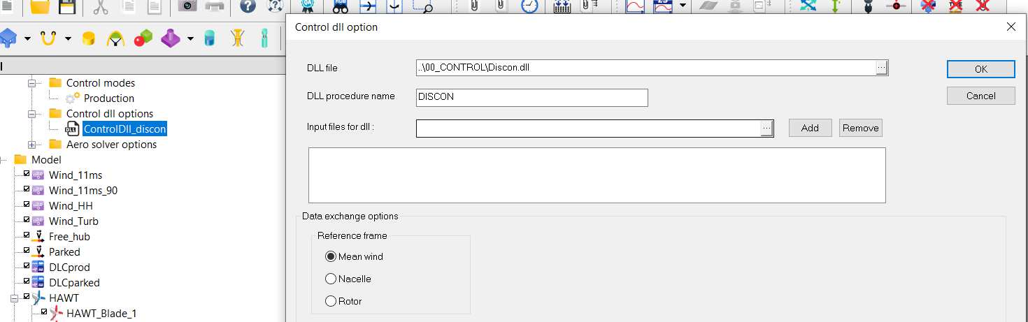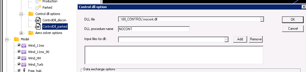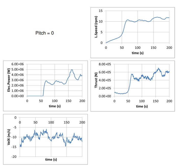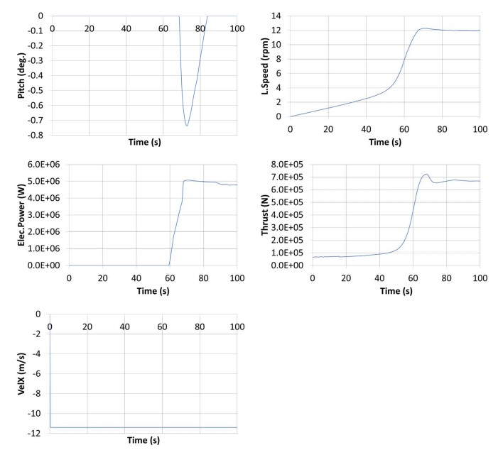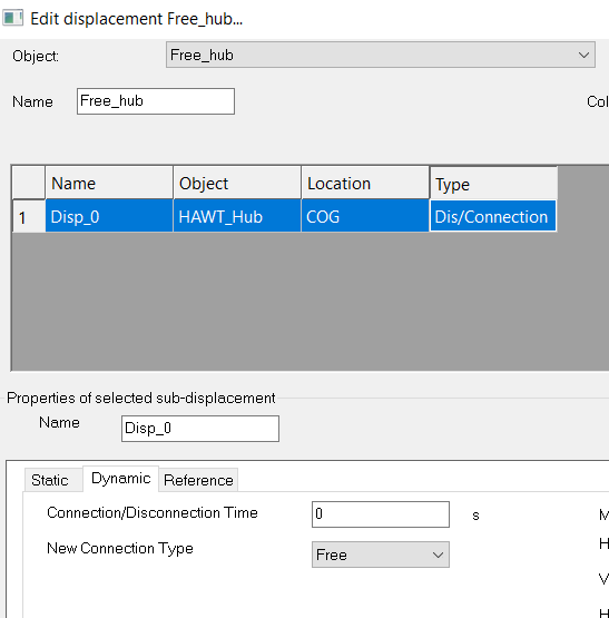 The blades are rotated by a 90° angle during the static calculation in order to reduce the drag forces on them and consequently the thrust force. The hub is not released at the beginning of dynamic calculation. A dummy controller is used which does nothing. A DLC has been used to modify the parameter of the controller for this analysis only.