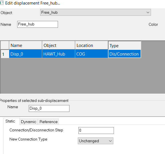 • The connection of the HAWT to other objects. In this example it is anchored and clamped which means that the bottom of the turbine does not move.