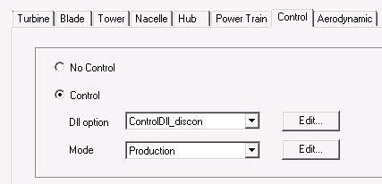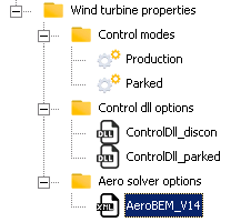The fluid description (density and viscosity) can also be modified in the sea&ground panel. At the beginning of each time step, a) the mechanical solver provides information on positions, velocities, and accelerations at blades nodes as well as wind velocities data and b) the controller is called. The aerodynamic solver computes the resultant forces on each beam element. Within a time step, the aerodynamic forces are considered constant and are used to load the blades until convergence.