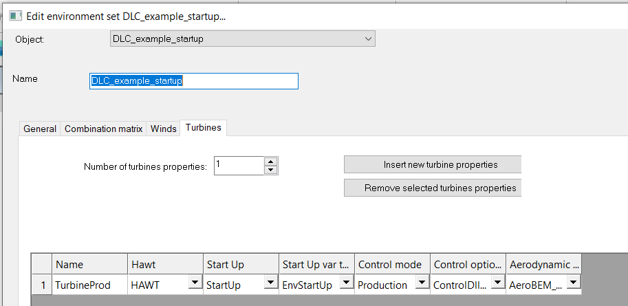 This is an analysis set with different production cases with wind speed varying from 2 to 30 m/s depending on the case. Wind speed is constant over time and height. Startup is applied to all cases with different parameters.