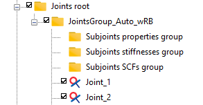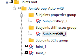 or use the New subjoints object item in the context menu of the relevant group (Subjoints stiffnesses group or Subjoints SCFs group), in which case the user can assign the stiffnesses or SCF values.