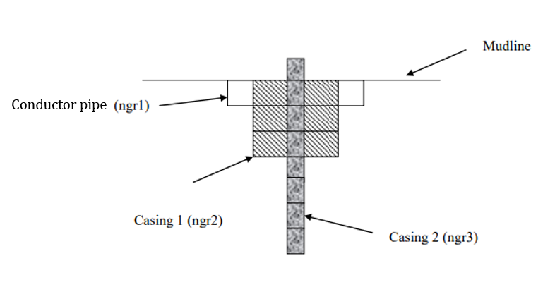 We consider here the case of two casings. On each section, the nodes defining the inner tubes are slaves to the node at the same elevation that belongs to the outermost tube (cemented case).