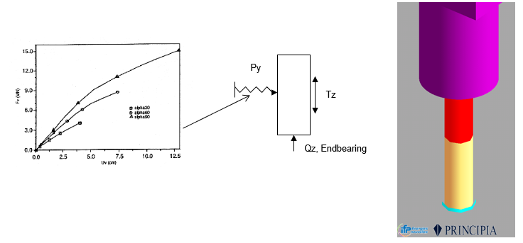Standard piles in the Oil & Gas industry are studied based on p–y / t–z curves according to API RP 2A §6 Foundation Design, which is dedicated to steel cylindrical pile foundations.