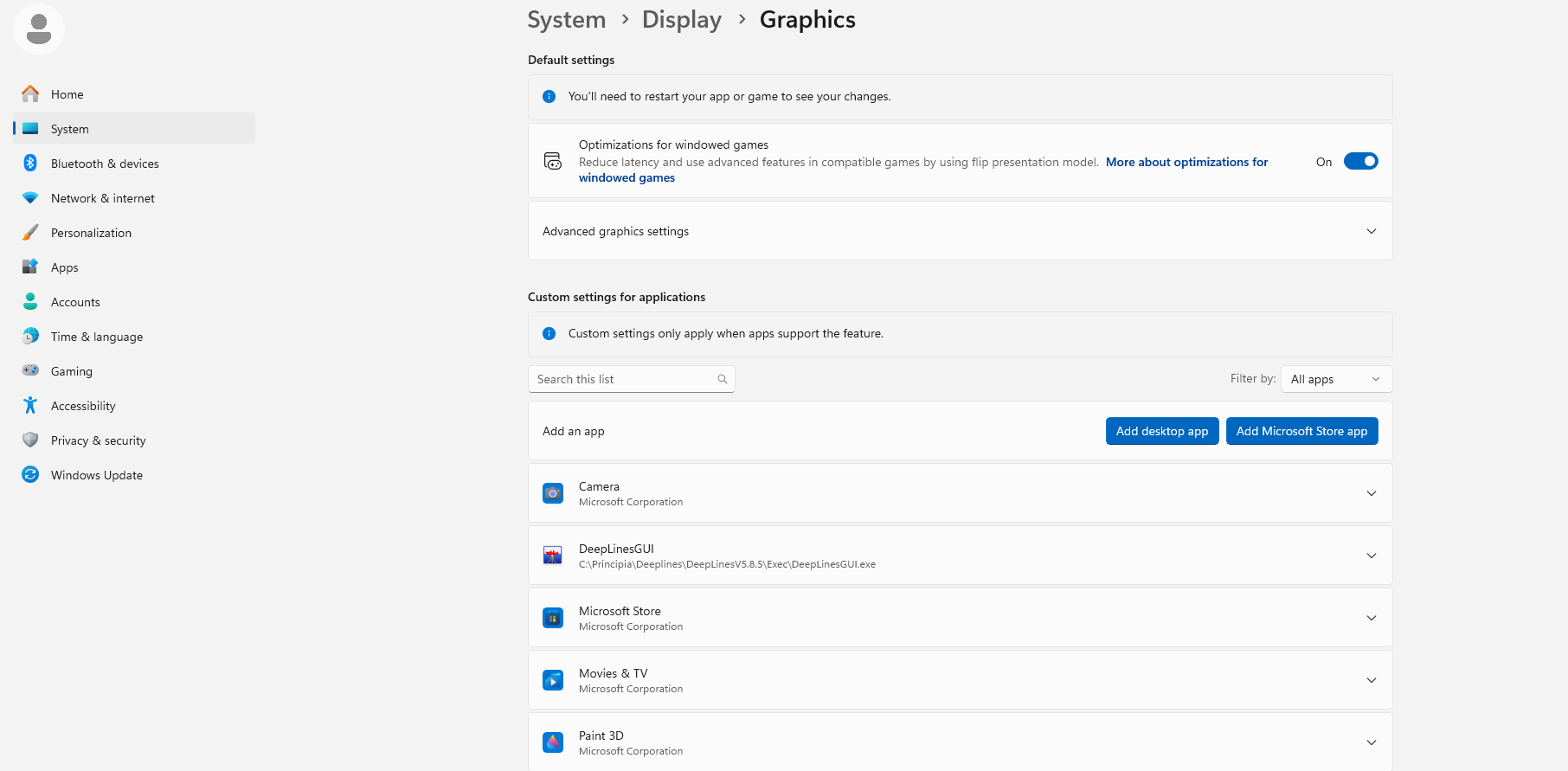 - Open the window parameter and click on System > Display > Graphics (Figure 2).