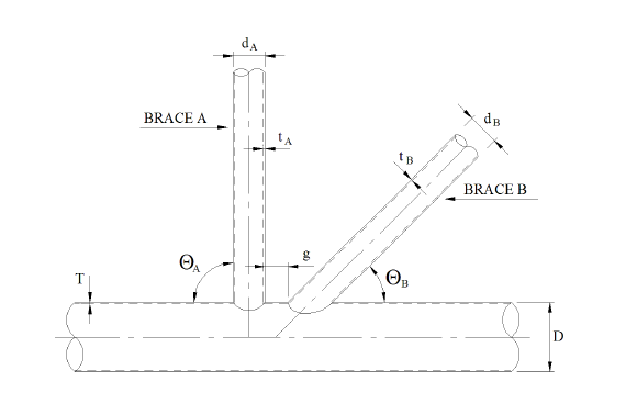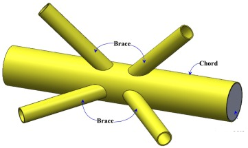 A joint has main aligned members called chords whose diameter are greater than the other connected tubes which are called braces :